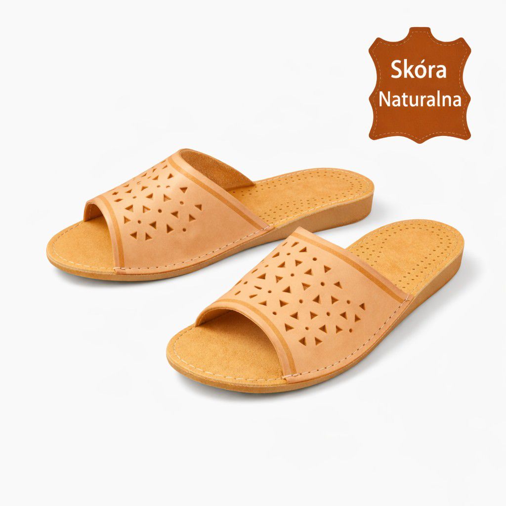 Kapcie damskie skórzane odkryte Jucht 147 – naturalna skóra i komfort
