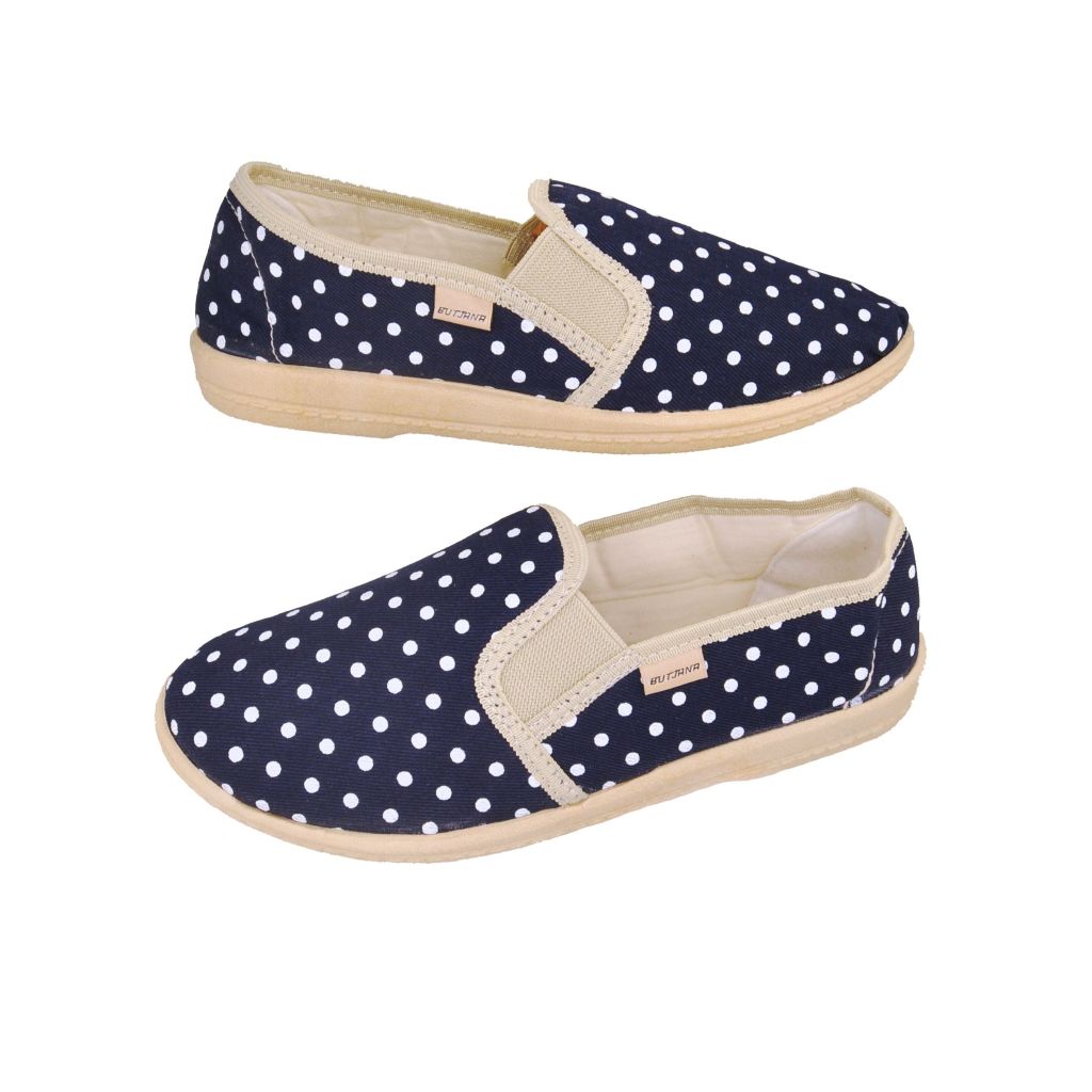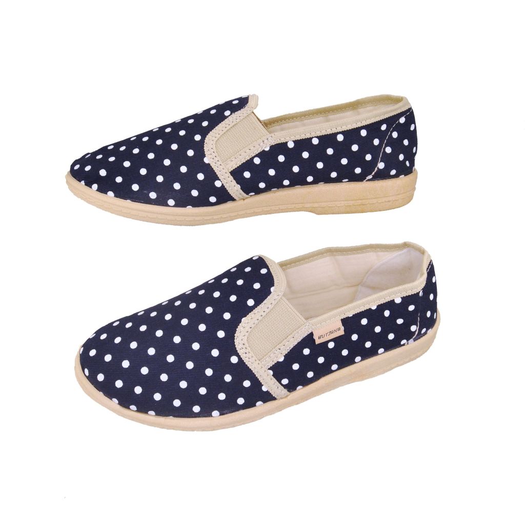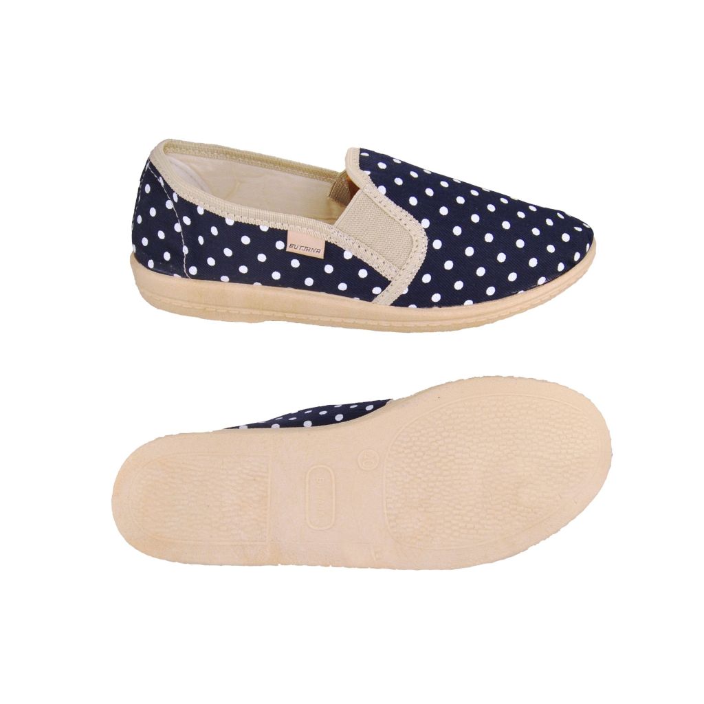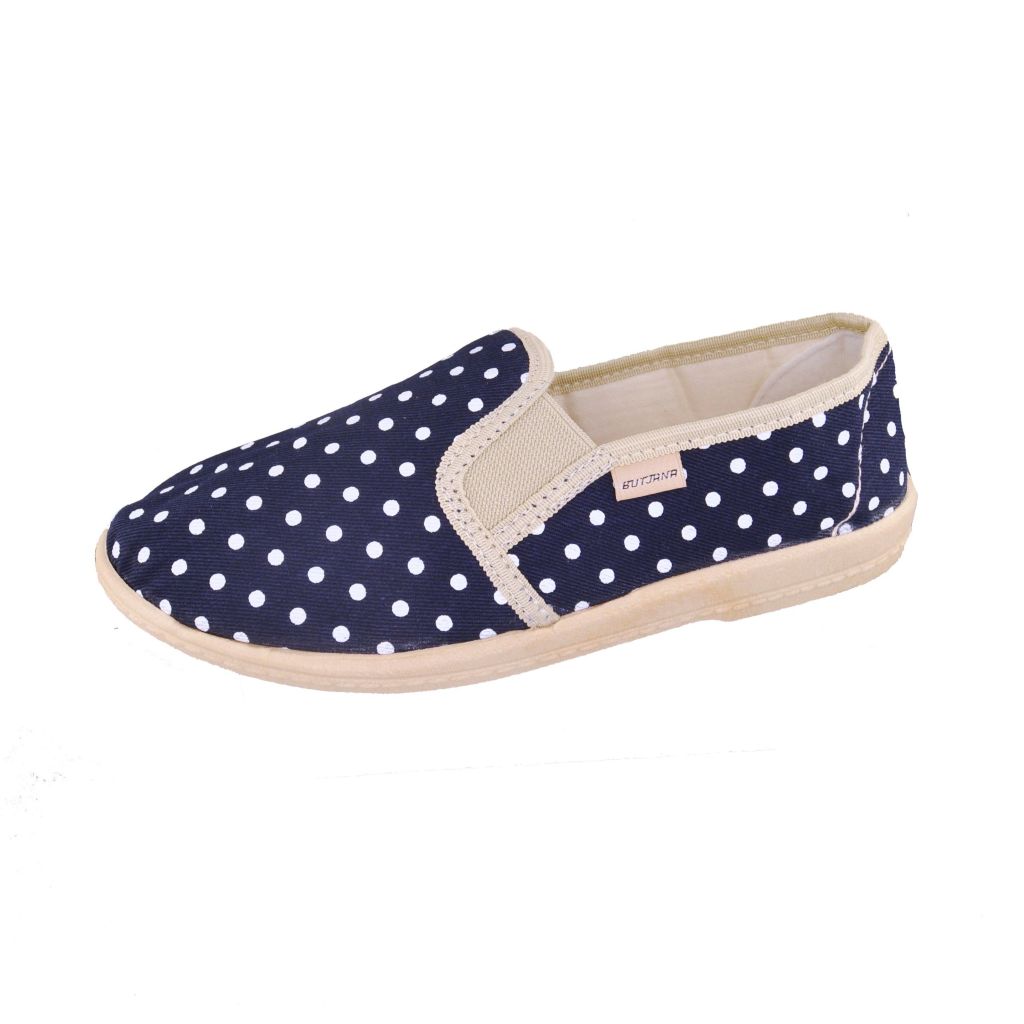 Klasyczny granatowy kolor w połączeniu z białymi kropkami nadaje kapciom ponadczasowego, kobiecego charakteru. To model, który łączy funkcjonalność z estetyką.