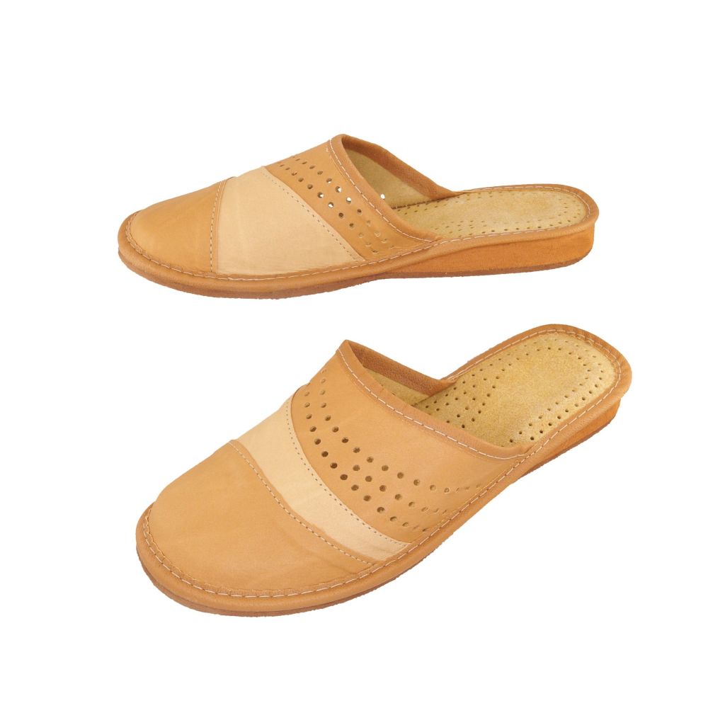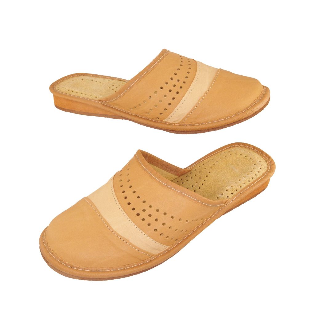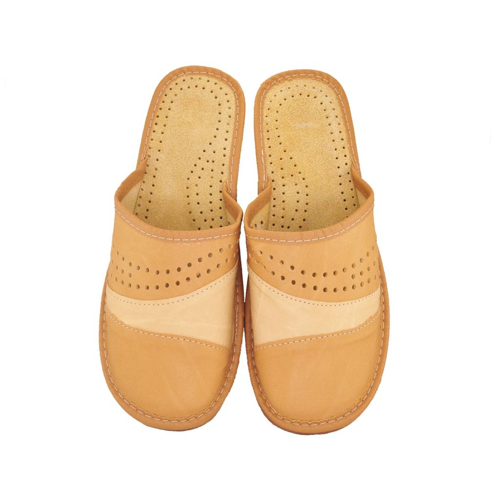 Kapcie damskie skórzane beżowe 1740 – wygodne pantofle domowe