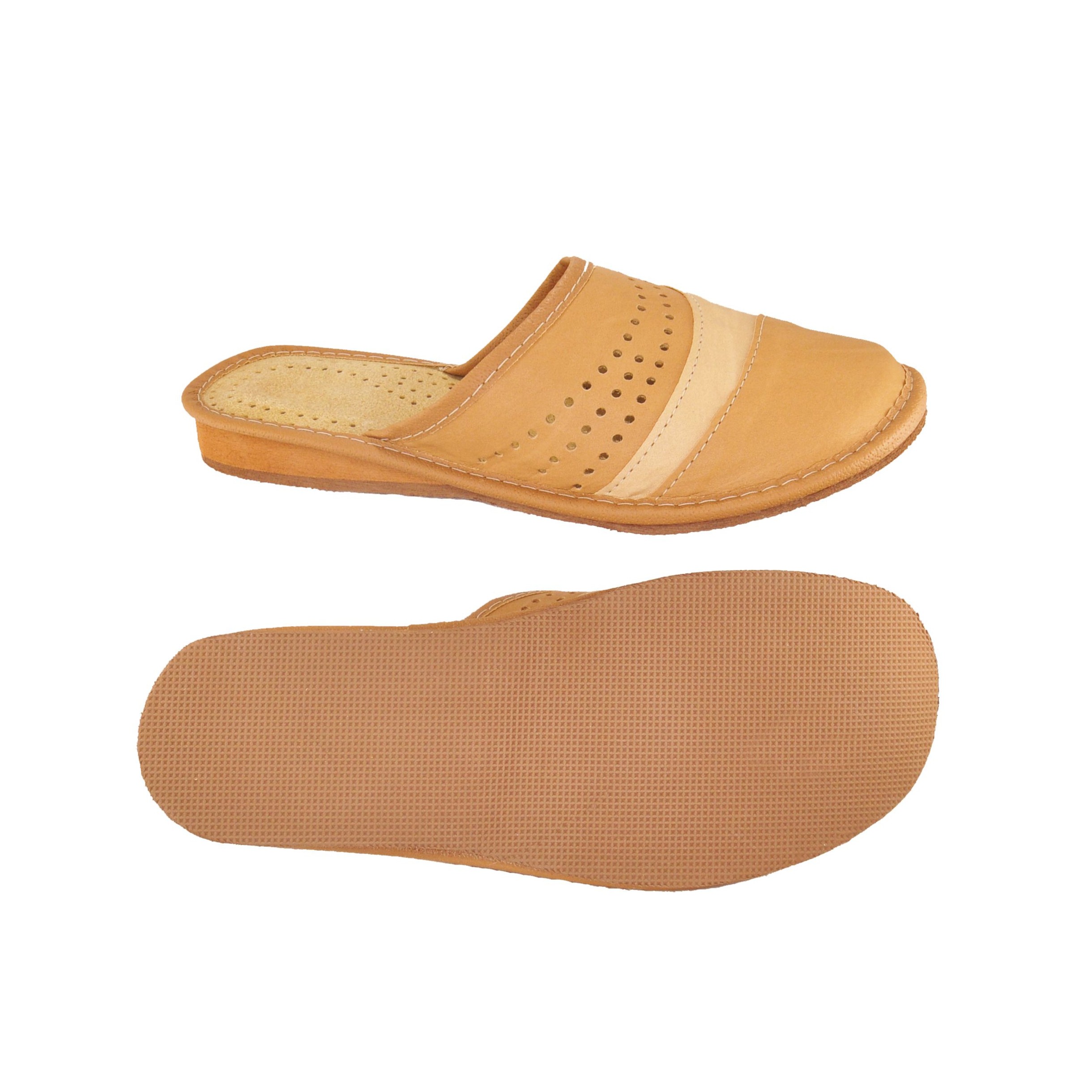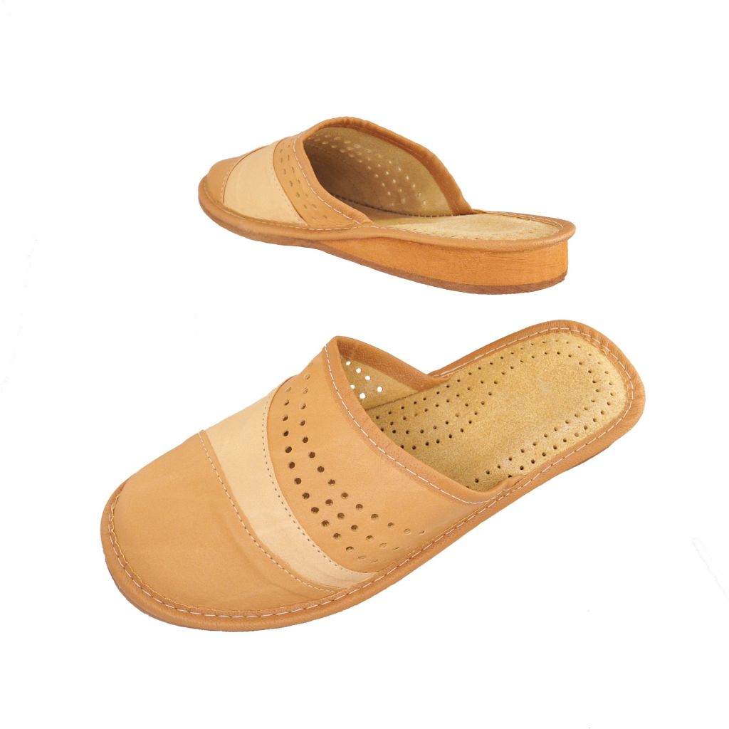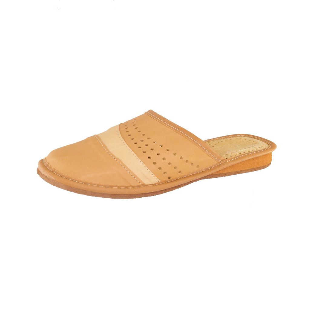 Kapcie damskie skórzane beżowe 1740 – wygodne pantofle domowe